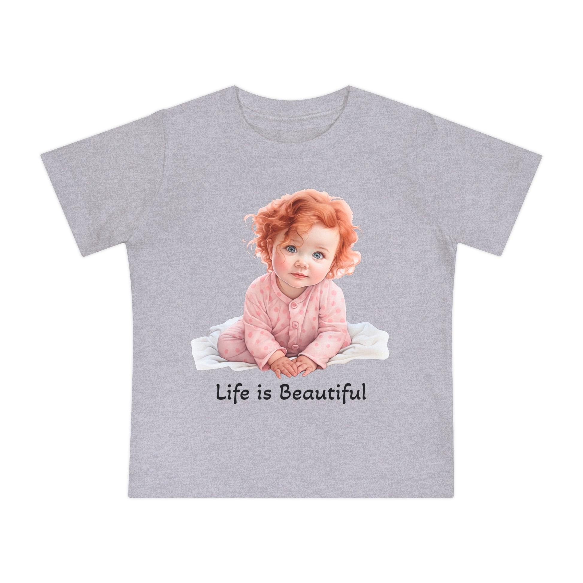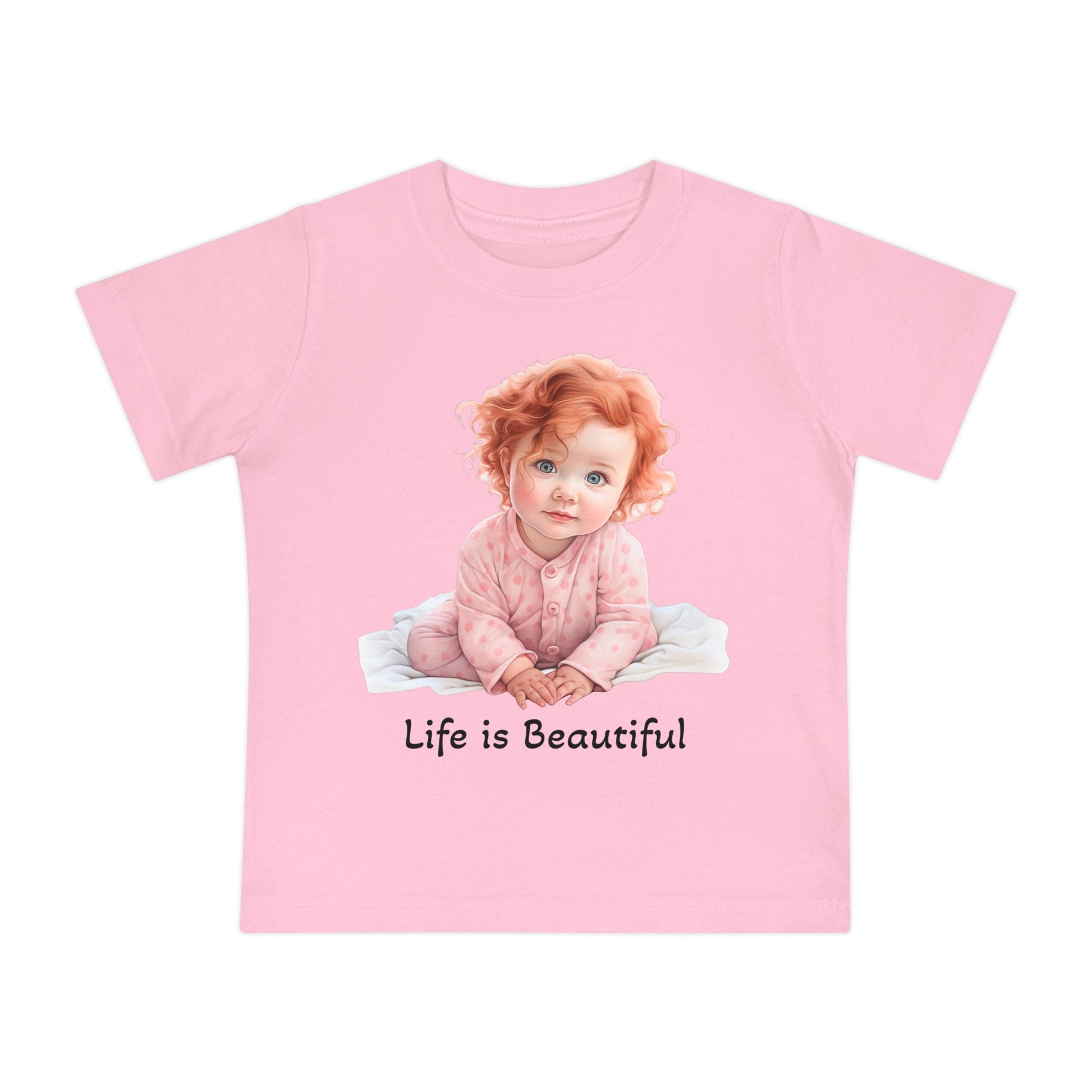 This adorable Baby T-Shirt features the uplifting message 'Life is Beautiful'. Made from 100% cotton, it is light and comfortable for your little one to wear. Perfect for parents who want to spread positivity and happiness. Ideal for baby showers, birthdays, and everyday wear.