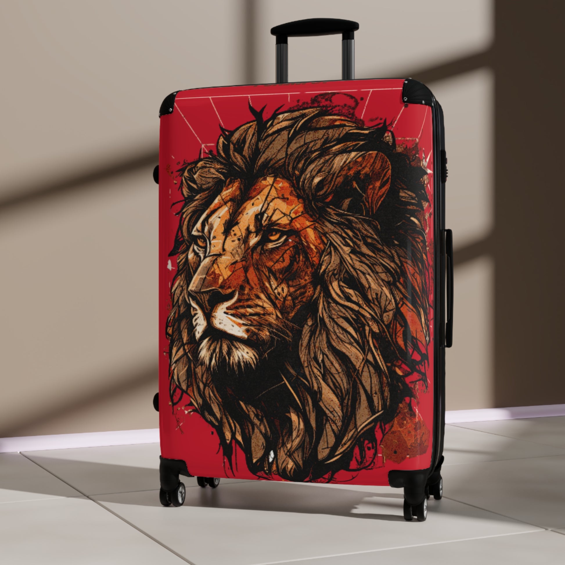 This vibrant red lion psalm 91 suitcase exudes strength and protection, making it perfect for travelers celebrating security and style. Ideal for those looking for a durable and customizable suitcase to stand out from the crowd. Relevant for vacations, holidays, and business trips.