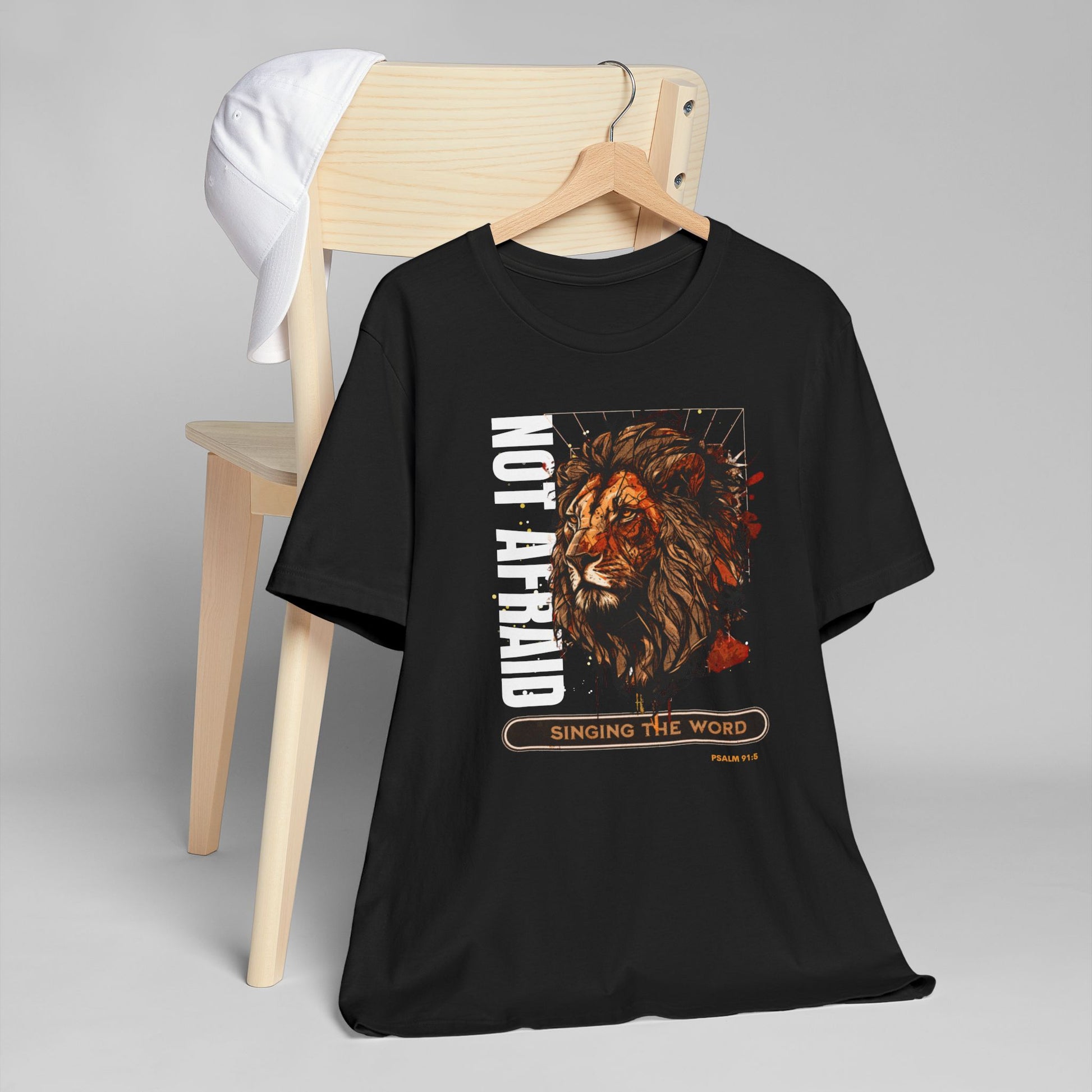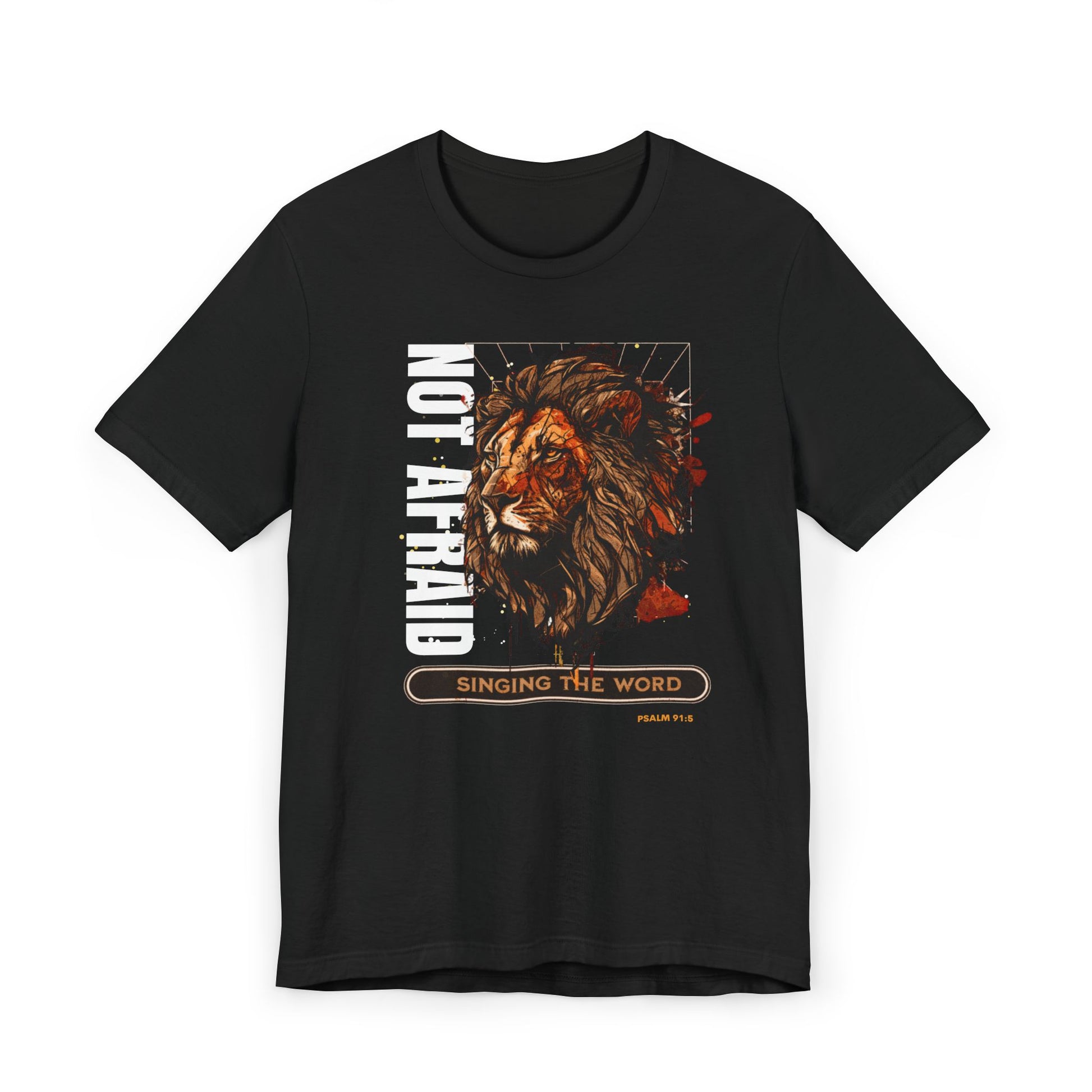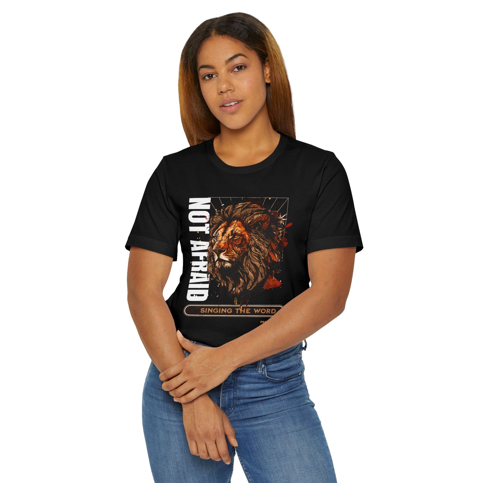 This Lion, Not be afraid T-Shirt exudes courage and strength. Perfect for those who want to showcase Psalm 91 and their fearlessness. Ideal for casual outings, gym wear, or layering. Suitable for individuals who appreciate unique and empowering designs. Great for occasions celebrating bravery and resilience.