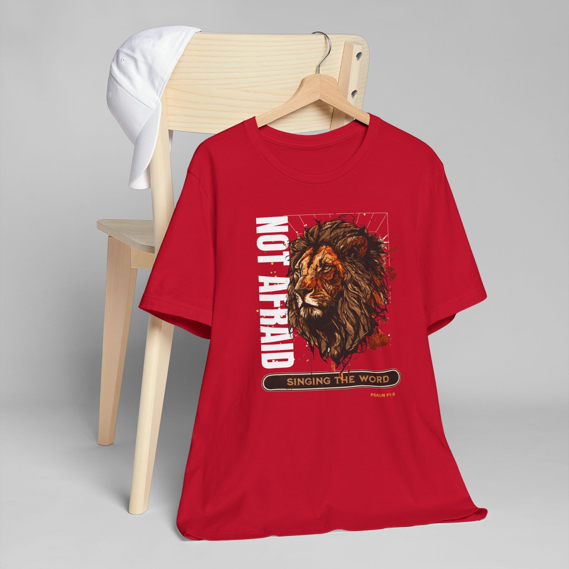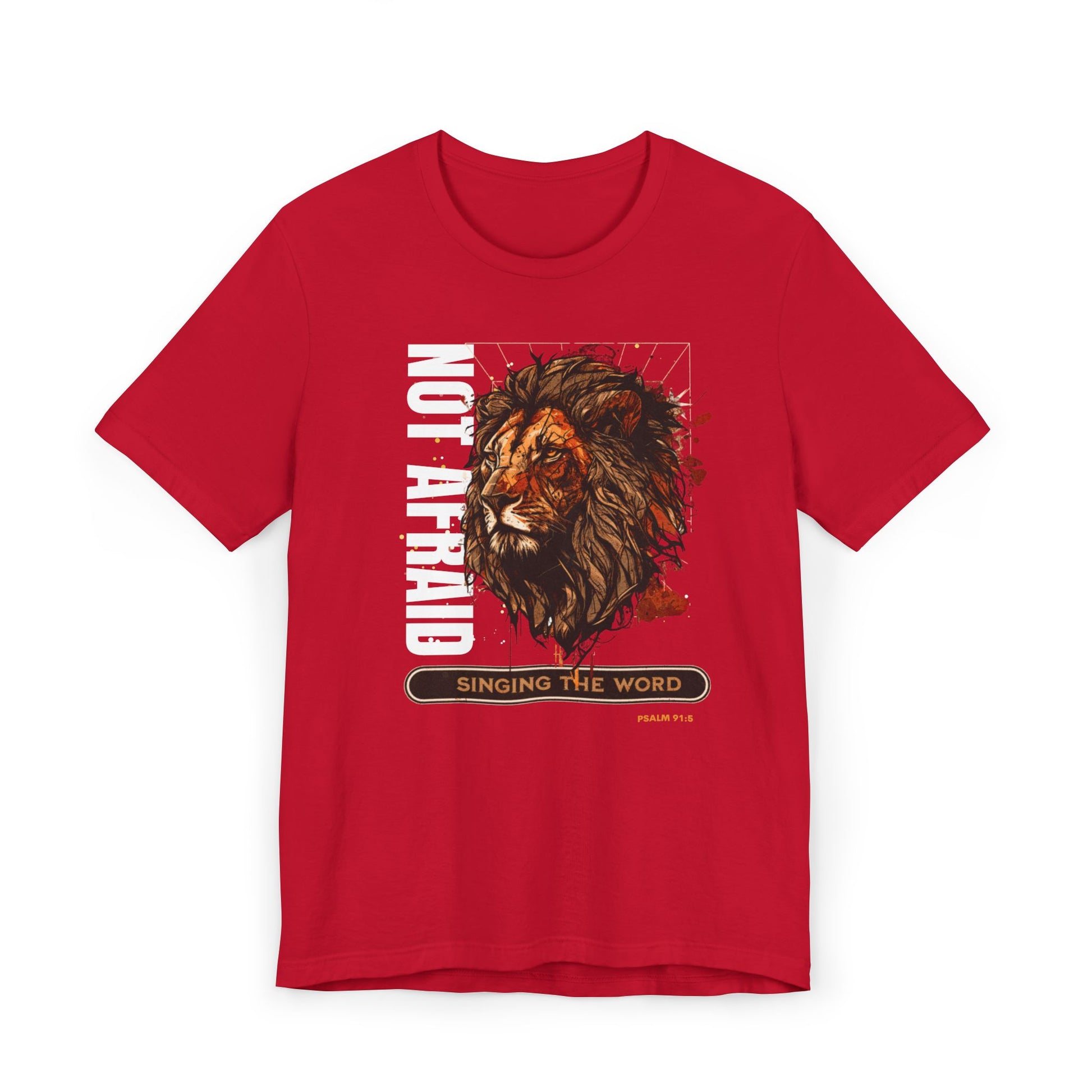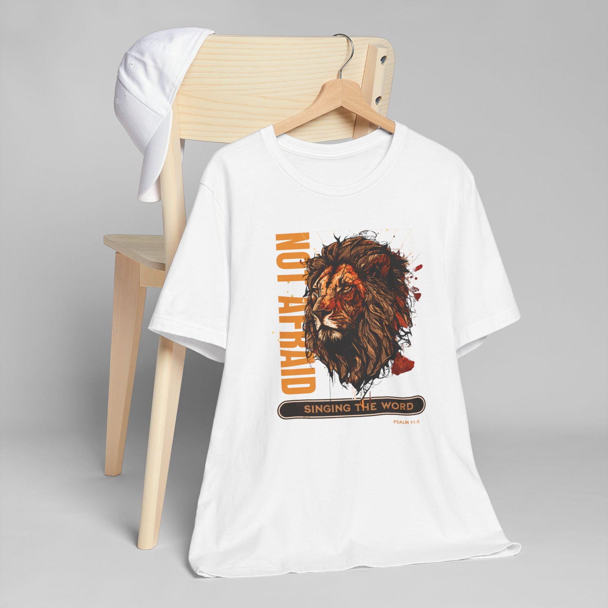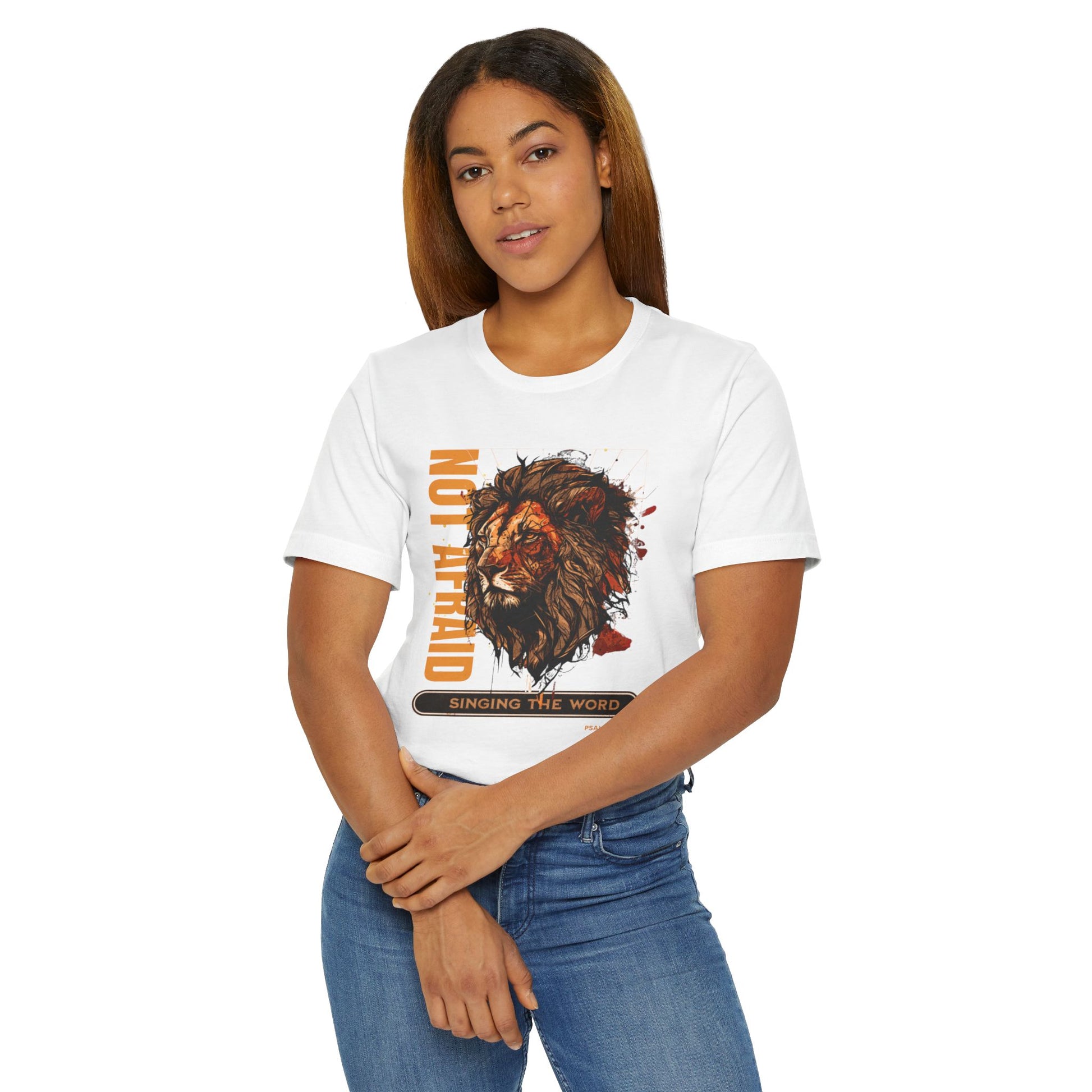 This Lion, Not be afraid T-Shirt exudes courage and strength. Perfect for those who want to showcase Psalm 91 and their fearlessness. Ideal for casual outings, gym wear, or layering. Suitable for individuals who appreciate unique and empowering designs. Great for occasions celebrating bravery and resilience.